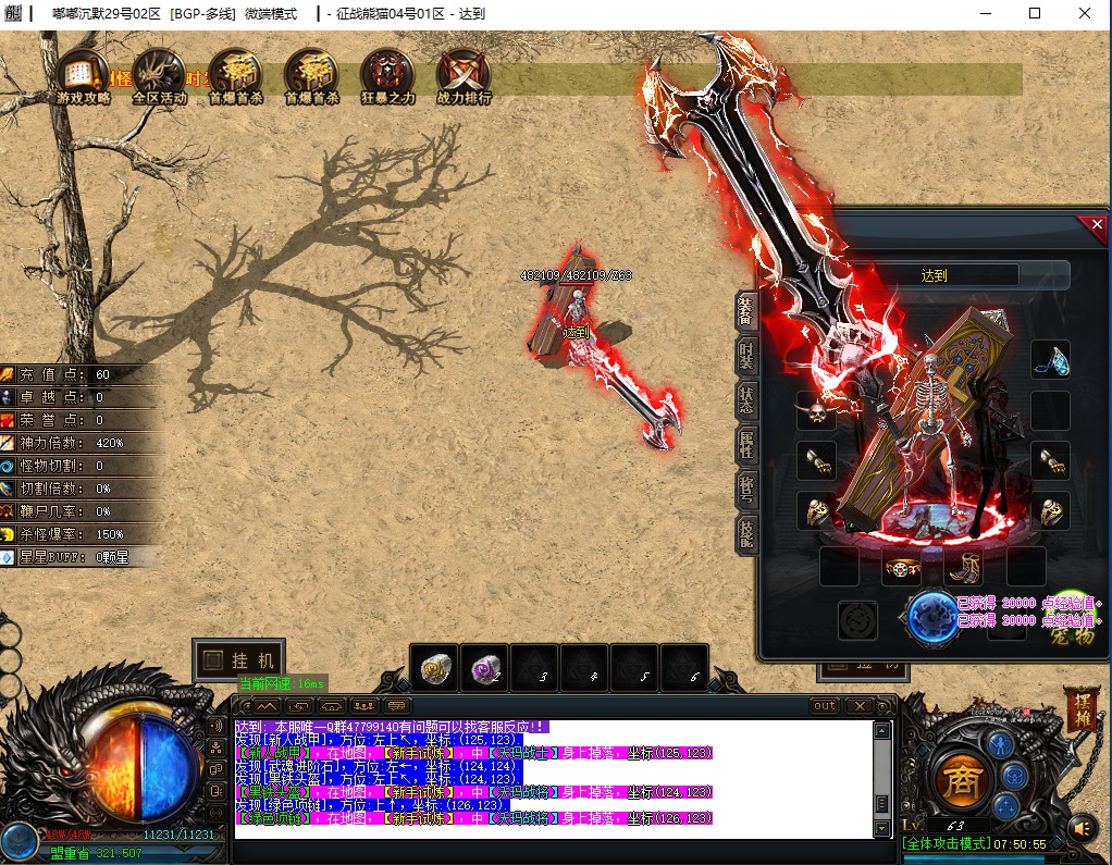 介绍2:本服地图多 , BOSS多 ,怪物刷新快 ,特色独家玩法在等你挑战。